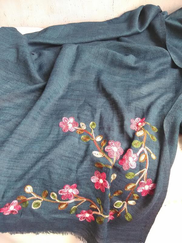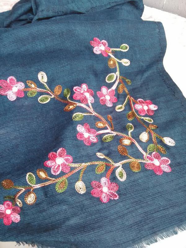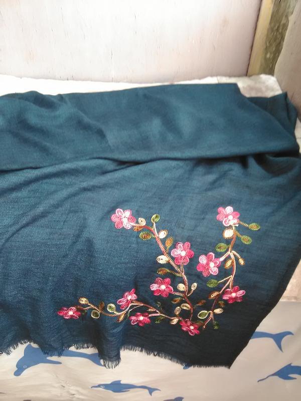 • Смарагдовий палантин з вишивкою фото