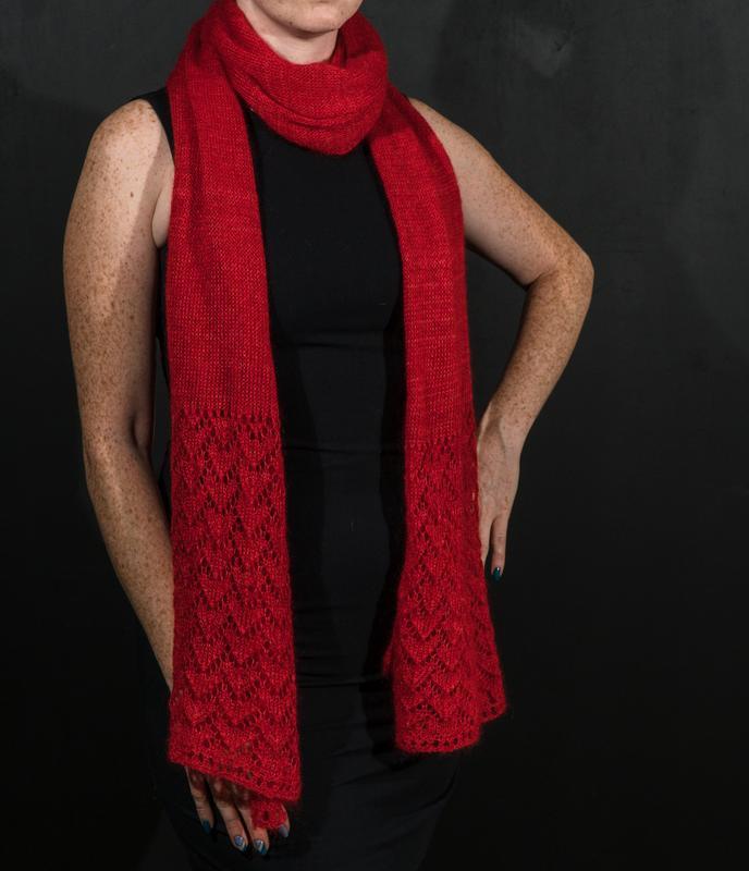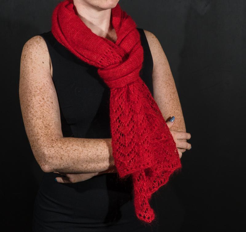 В’язаний ажурний палантин в червоному кольорі