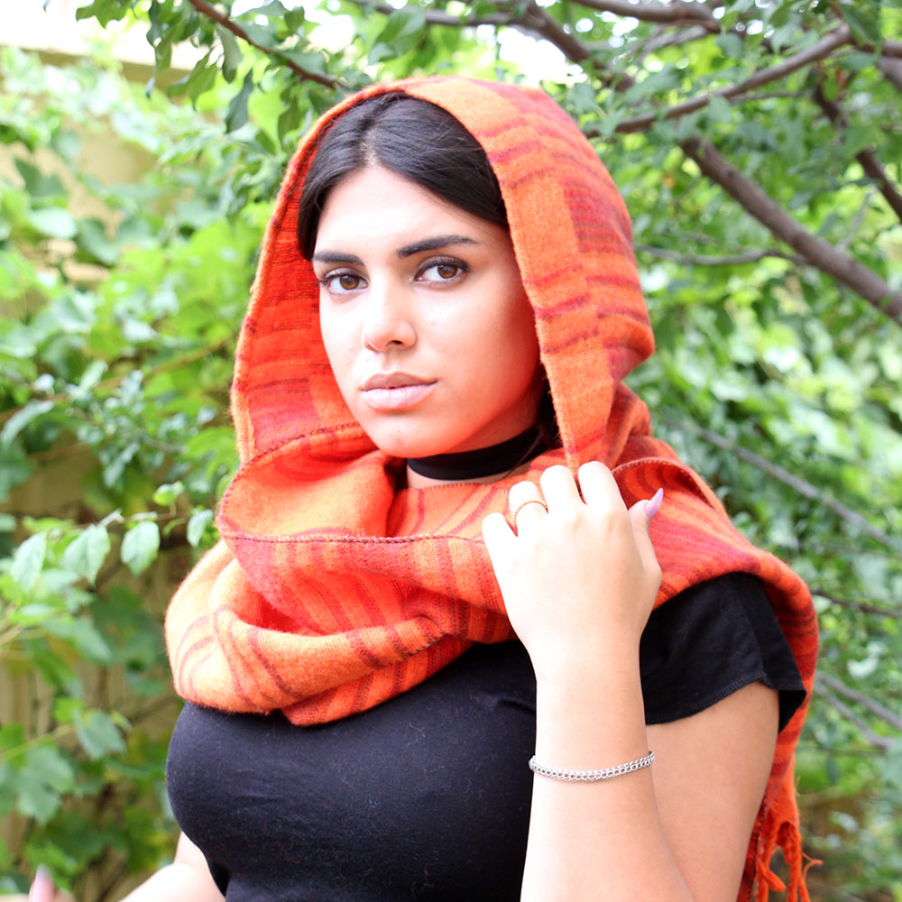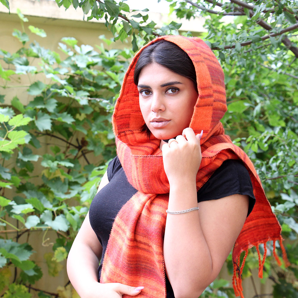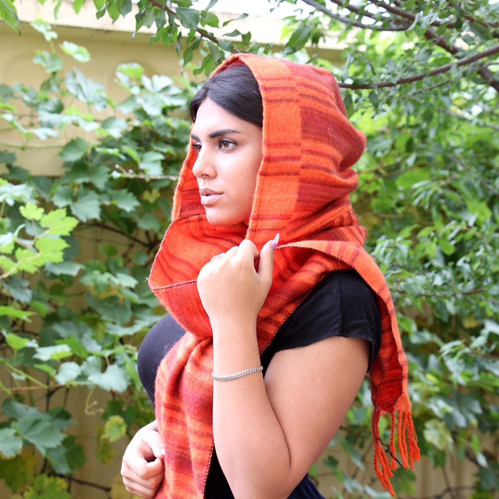 Стильный шарф-капюшон в полоску